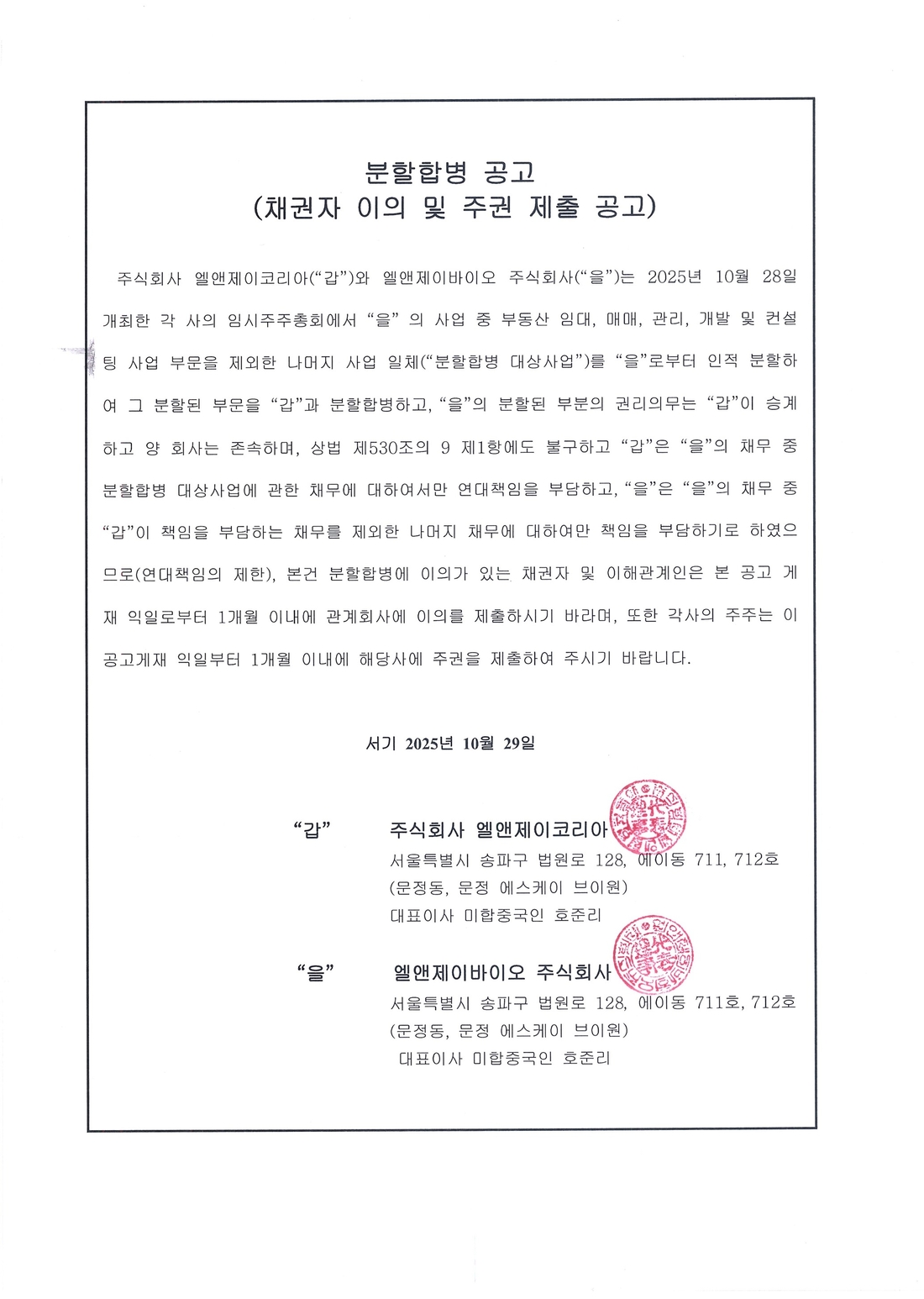 Notice of Spin-Off and Merger — Notice to Creditors for Objection and Submission of Share Certificates